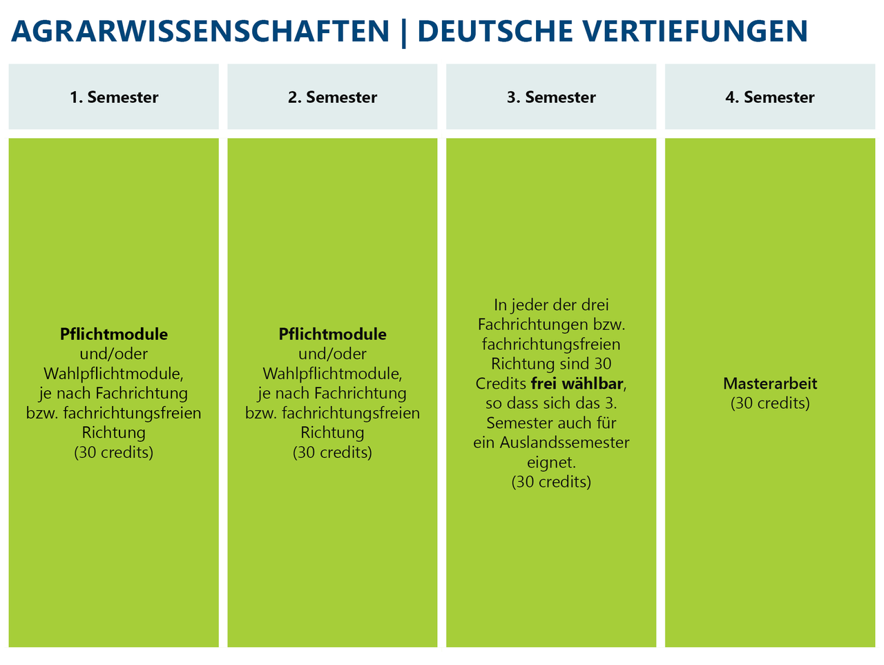 호엔하임대학교의 농학 석사과정은 총 2년 과정이다. 영어로 진행하는 수업들도 있지만 기본적으로 독일어 과정이다.